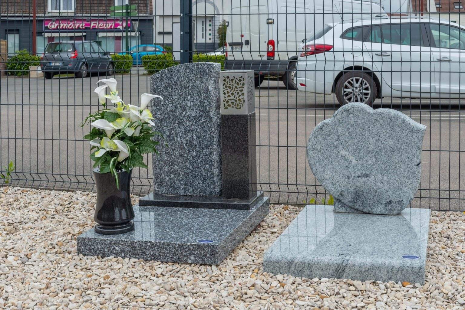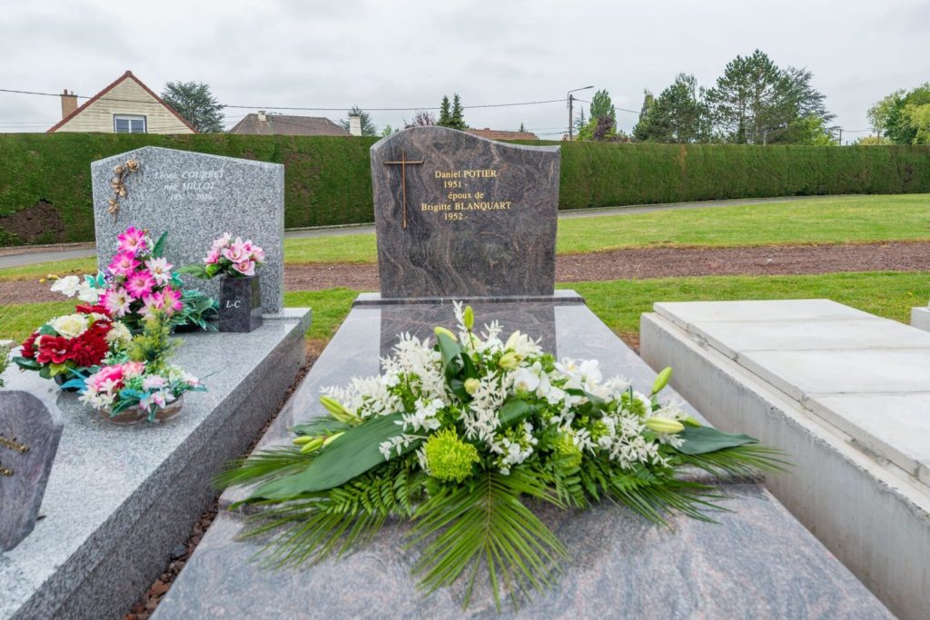 – la pierre tombale : vous pouvez choisir parmi plusieurs matériaux, de la pierre (l’entretien est fastidieux), le marbre (le choix de couleur est limité) et le plus courant le granit qui permet d’avoir un large choix de couleurs;